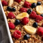 To elevate your No-Flour, No-Sugar Oatmeal Breakfast Bake Recipe, try sprinkling some chopped nuts like walnuts or pecans for crunch, or add fresh berries to brighten up the dish with a pop of color and natural tartness. A drizzle of almond butter or a dollop of Greek yogurt also complements the flavors perfectly.