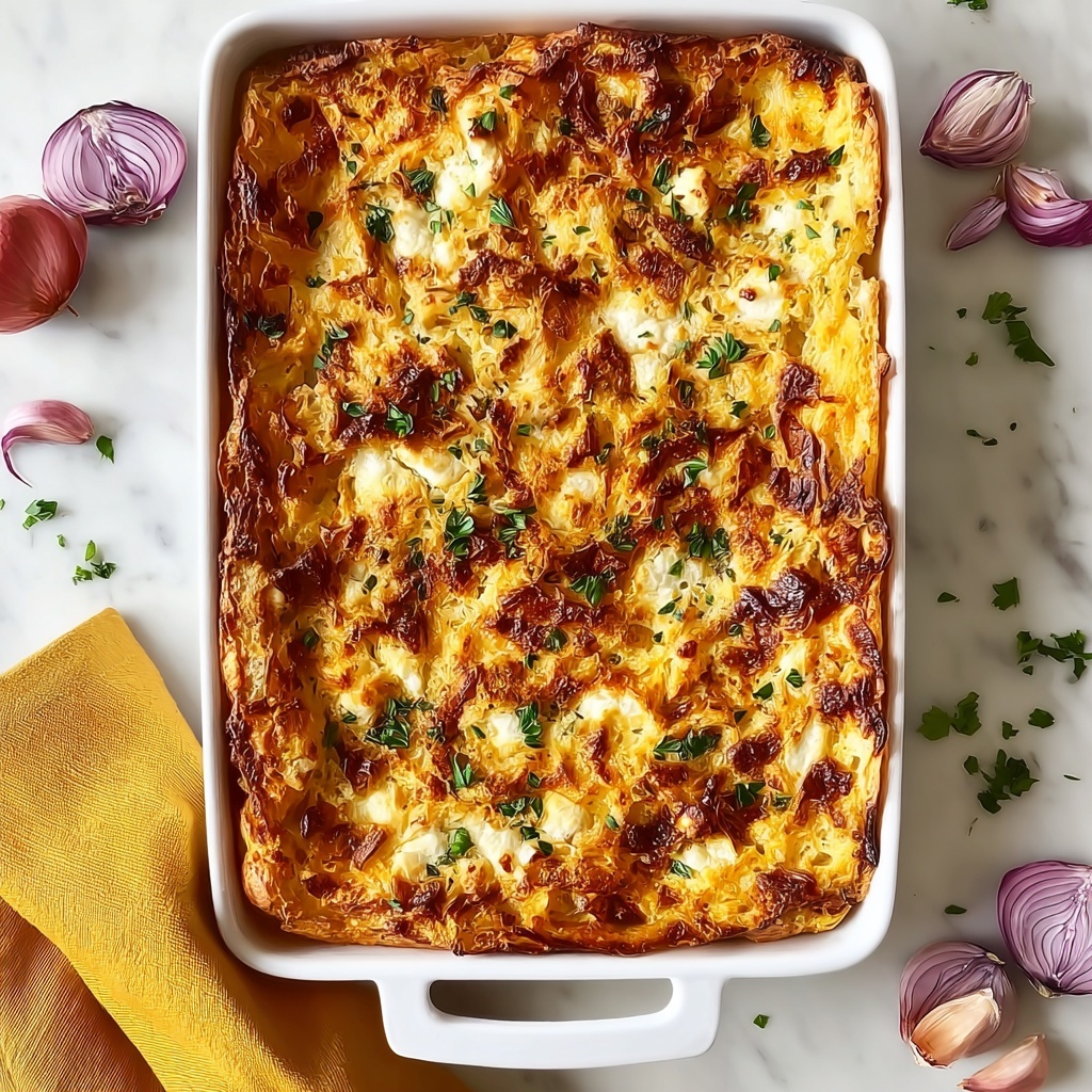 Serve this casserole in rustic individual ramekins or small cast iron skillets for a cozy, inviting look that’s great for family dinners or guests. For a festive touch, garnish with edible flowers or arrange colorful roasted veggies around the edges on the platter. You could also top the casserole with crispy fried onions just before serving to add a delightful crunch.