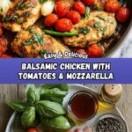 This One Pan Balsamic Chicken recipe features tender, seared chicken breasts baked in a flavorful balsamic-honey glaze with fresh grape tomatoes, mozzarella balls, and basil. It’s a simple yet elegant dish perfect for a quick weeknight dinner or a casual gathering, combining savory, tangy, and sweet flavors in one skillet for minimal cleanup.