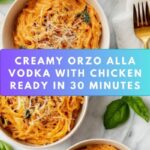 Orzo alla Vodka with Chicken is a creamy, flavorful Italian-inspired one-pot meal featuring tender orzo pasta cooked in a rich vodka tomato cream sauce with succulent rotisserie chicken, fresh basil, and a touch of parmesan cheese. This comforting dish is quick to prepare and perfect for a satisfying weeknight dinner.