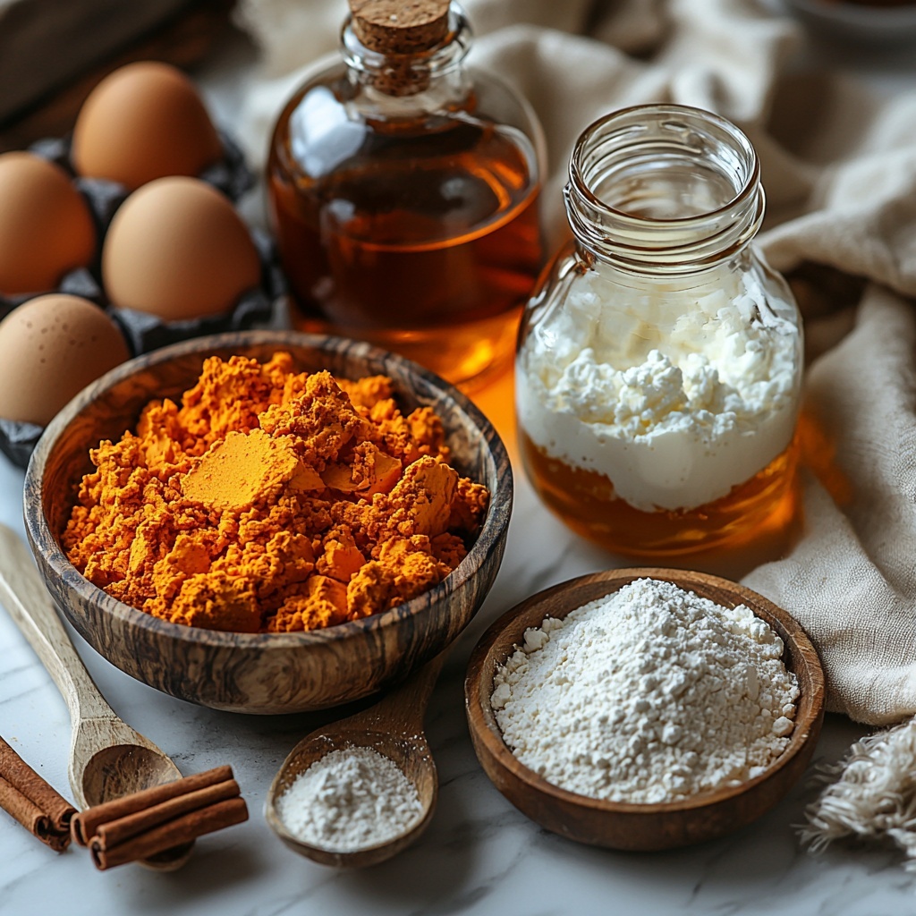 - Combine Wet Ingredients: In a large bowl or blender, mix together eggs, pumpkin puree, cottage cheese, maple syrup, and vanilla extract until well combined to create a smooth batter base.