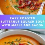 This Roasted Butternut Squash Soup is a rich, creamy, and comforting fall favorite that combines the natural sweetness of roasted butternut squash and carrots with warm spices and a touch of maple syrup. Topped with crispy bacon bits or toasted pepitas and fresh parsley, it’s perfect for cozy dinners and gatherings.
