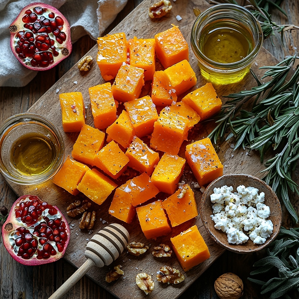 - Assemble and Serve: Allow the roasted squash and nuts to cool slightly, then transfer to a large serving bowl. Sprinkle fresh rosemary, crumbled goat cheese, and fresh pomegranate arils over the top. Serve immediately to enjoy the contrast of the warm squash and cool toppings.
