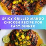 This Spicy Grilled Mango Chicken recipe features juicy boneless, skinless chicken breasts marinated in a vibrant, sweet and spicy mango-based sauce. The marinade combines ripe mangoes, lime juice, honey, and a blend of chili powder, cumin, paprika, and cayenne pepper for a flavorful kick. Grilled to perfection, this dish is garnished with fresh cilantro and served with lime wedges, making it a refreshing and delicious meal perfect for outdoor barbecues or a flavorful weeknight dinner.
