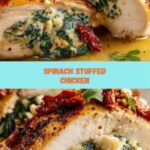 This Spinach Stuffed Chicken Breast recipe features tender chicken breasts filled with a flavorful mixture of sautéed spinach, ricotta, mozzarella, and Parmesan cheeses, all seasoned with garlic and oregano. The chicken is seared to a golden brown on the stovetop before finishing in the oven, resulting in a juicy, cheesy, and healthy main dish perfect for a family dinner or special occasion.