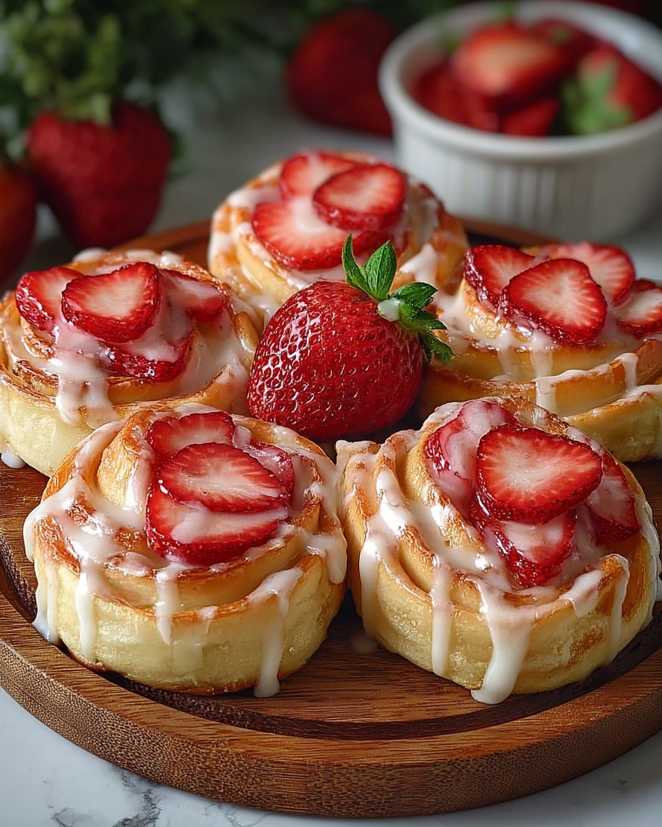 Fresh strawberry slices or a sprinkle of chopped pistachios add a colorful, crunchy touch that complements the creamy rolls beautifully. You can also lightly dust with powdered sugar for a pretty presentation that feels festive.