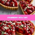 A delightful Strawberry, Feta & Thyme Tart featuring a flaky puff pastry crust topped with juicy strawberries, creamy feta cheese, and aromatic fresh thyme. Enhanced by a touch of honey and lemon for a perfect balance of sweet and tangy flavors, this tart is ideal as a sophisticated appetizer or a unique dessert.
