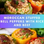 A flavorful Moroccan-inspired dish featuring large bell peppers stuffed with a savory mixture of ground kefta (beef or lamb), cooked rice, and aromatic spices. The stuffed peppers are baked in a rich tomato sauce until tender and browned, perfect for a wholesome and satisfying main course.