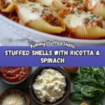 Delicious stuffed jumbo pasta shells filled with a creamy ricotta and spinach mixture, baked in marinara sauce and topped with melted mozzarella cheese. This comforting Italian-inspired dish is perfect for a family dinner and easy to prepare in under an hour.