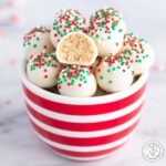 Delight in these festive Sugar Cookie Truffles, a no-bake treat combining crushed sugar cookies and cream cheese with a luscious white chocolate coating. Perfect for holiday gatherings, these creamy, sweet truffles are easy to make and decorated with colorful sprinkles for a cheerful finish.