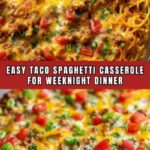 Taco Spaghetti Casserole is a delicious fusion of classic taco flavors with comforting baked pasta. Featuring ground beef seasoned with taco spices, mixed with spaghetti noodles, creamy sour cream, and melted Mexican cheese blend, this casserole is a perfect easy weeknight dinner with a spicy kick and a cheesy finish.