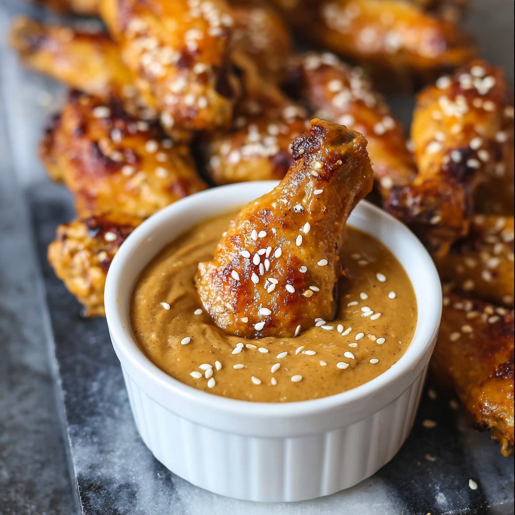 These Thai Chicken Wings with Spicy Peanut Sauce combine crispy, tender chicken wings with a rich, flavorful peanut dipping sauce that offers a perfect balance of sweet, spicy, and savory notes. Marinated in Greek yogurt for tenderness and baked to golden perfection, they are an irresistible appetizer or snack for any gathering.
