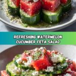 A refreshing and vibrant Watermelon Cucumber Feta Salad combining sweet watermelon, crisp cucumber, tangy feta cheese, and fresh mint, dressed in a light lime and olive oil dressing. Perfect for hot summer days or as a light appetizer.