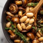 - Add White Beans: Mix the drained white beans gently into the mushroom and garlic mixture to combine evenly without breaking the beans.