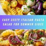 This Zesty Italian Pasta Salad Recipe pairs wonderfully with grilled chicken, seafood, or crisp garlic bread. It also works as a fantastic accompaniment to a summer barbecue or picnic, balancing out heartier dishes with its bright and refreshing flavors.
